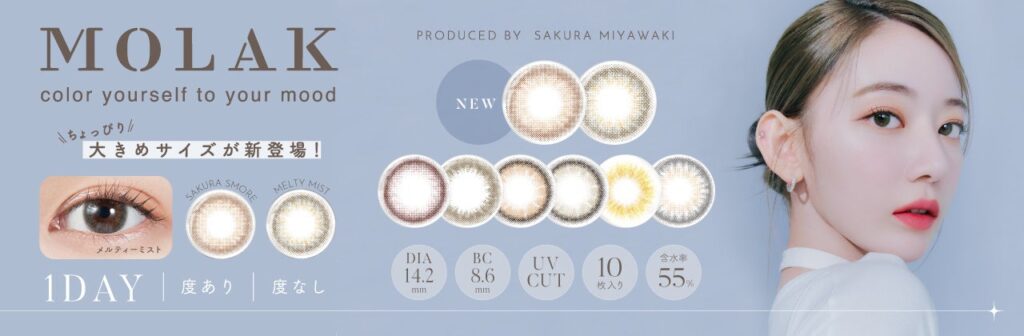 MOLAK(モラク)は、常に変化する自分の気分に寄り添い、自分らしさを引き立てるカラーコンタクトレンズブランドです。瞳の印象を引き立てるカラーリングと繊細なデザインで、自然な美しさを演出します。