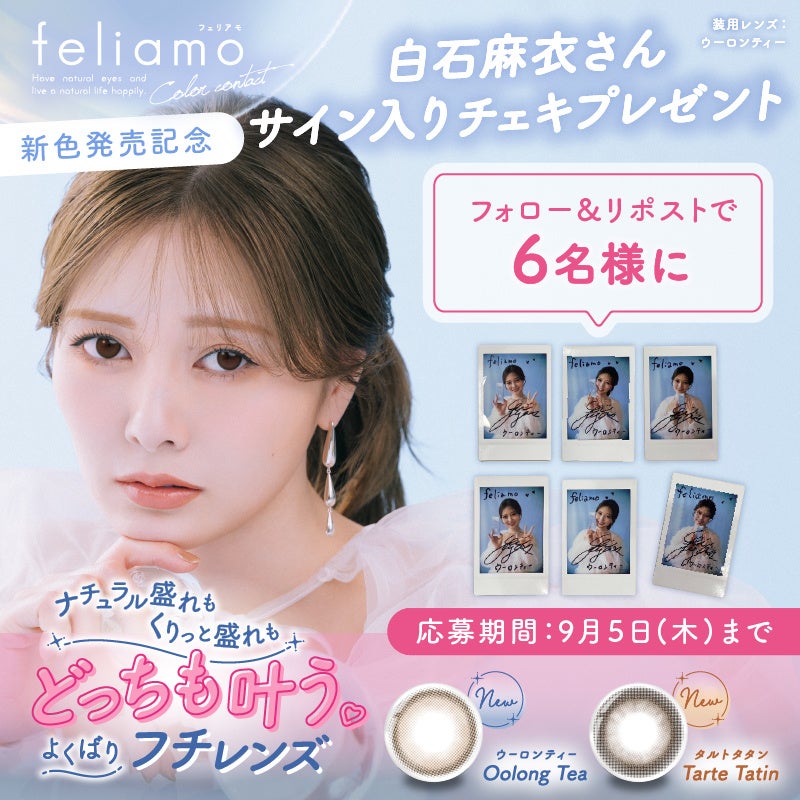 本日8月26日(月)より、feliamo公式Xにて抽選で6名様に白石麻衣さんのサイン入りチェキが当たるプレゼントキャンペーンを実施いたします。