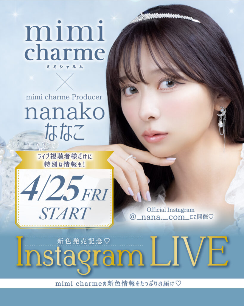 発売日の4月25日(金)には、mimi charme(ミミシャルム)プロデューサーのnanakoななこさんによる「nanakoななこ×mimi charme Special Instagram Live」を実施いたします。