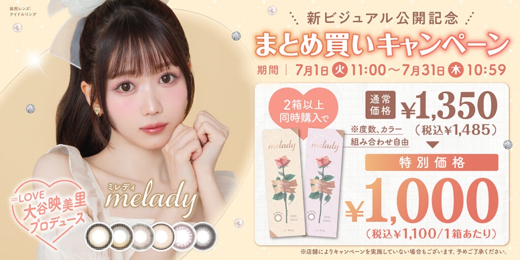 『melady(ミレディ)』は発売以来、=LOVE 大谷映美里さんプロデュースのもと、こだわりをぎゅっと詰め込んだ、“盛れる“カラコンを展開してきました。こだわりを詰め込んだレンズは、誰でもきゅるんなかわいさにハマること間違いなし!今後も、”meladyにおまかせ♡“いただけるような盛れるカラコンをお届けしてまいります。
